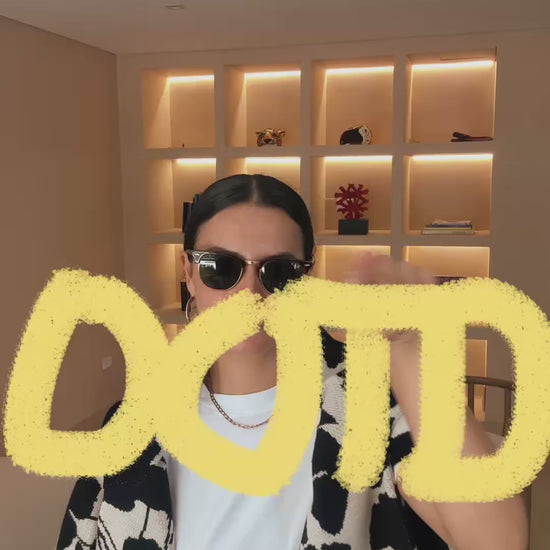 Cardigan oversized tejido color beige y negro. Hecho por manos 100% Colombianas
