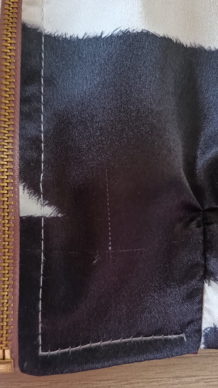-Terminación de la cremallera un poco desgastado, pequeña mancha oscura en el fuelle de sisa